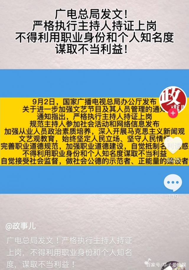 在这诸多措施当中,有一条显得格外显眼,那就是:主持人必须持证上岗,不得利用职业身份和个人知名度谋取不当利益!