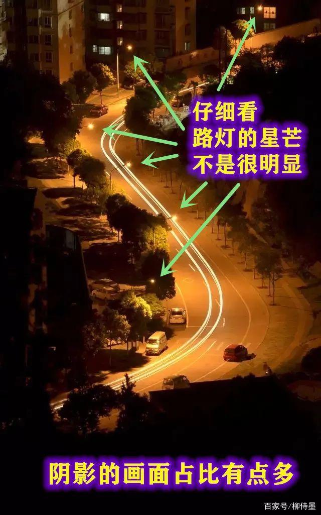 首先,侍墨注意到,道路两边的路灯,并没有拍摄出很明显的星芒效果。