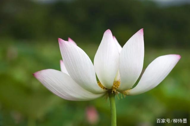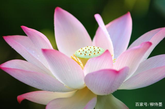 不过,侍墨注意到,照片下方的荷花,对焦点似乎没有放在雌蕊上面,而是放在了花蕊前方的花瓣上面。
