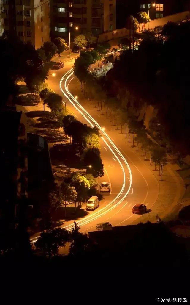 小路夜景,这两条S型的“光绘线条”很是显眼。