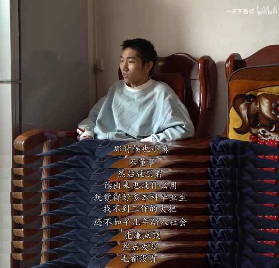 “上学的时候觉得读书没有什么用,大把本科生找不到工作,不如早点辍学挣点钱。结果发现还是挣不到钱,如果可以选择的话,还是想读书。”