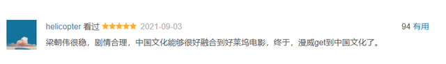 而梁朝伟饰演的文武则被认为是有情有义,符合中国人的思维和准则。这个角色据说是塑造得非常成功,因此梁朝伟获得了巨大的表现空间,他用实力驱散了所有质疑,漫威应该是没有坑他。