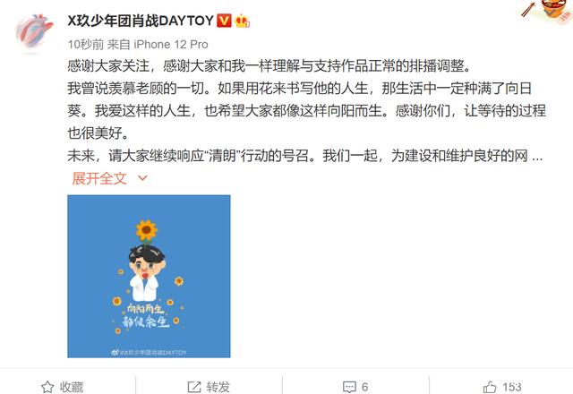 肖战感性称:“我曾说羡慕老顾的一切。如果用花来书写他的人生,那生活中一定种满了向日葵。我爱这样的人生,也希望大家都像这样向阳而生。感谢你们,让等待的过程也很美好。”
