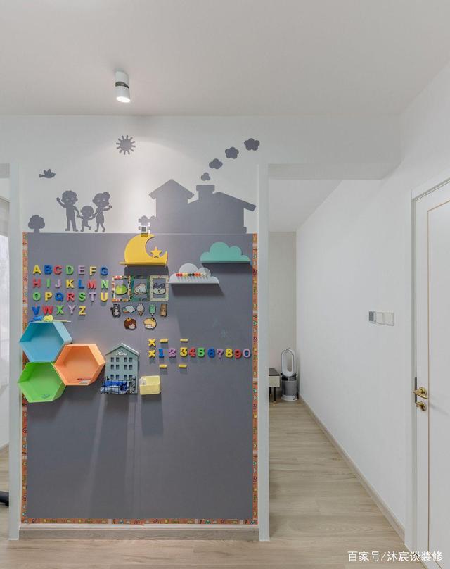 中间被实墙隔开,在安全最大化的前提下,保留了中间墙体,两边对称式的出入门洞给儿童出入时带来便利,还有背面自由涂鸦的黑板墙,增添了生活乐趣。