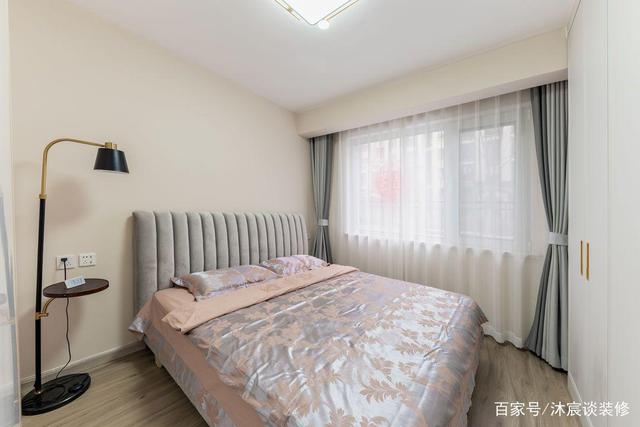 把老人房设置在一楼又是朝南的卧室,很契合老年人的物质,还不用上下楼梯,放松了腿脚。虽然这里是缩减了一些空间,但现在看来不会显挤,暖米色墙面给空间增加了温馨,整洁清爽十分舒适!