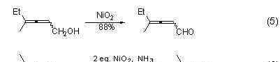 在苯溶剂中,在过氧化镍(式5)[4]的作用下,伯丙二烯基醇可以高产率地氧化成相应的醛。当反应在氨介质中进行时,伯丙二烯基醇可以被氧化成相应的酰胺(式6)。
