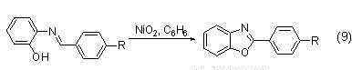 过氧化镍也可以实现脱氢反应,例如邻氨基苯酚和苯甲醛生成的席夫碱化合物在过氧化镍的作用下可以发生分子内氧化脱氢环化反应(式9)。