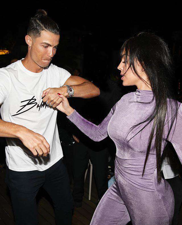 C罗和未婚妻甜蜜亲吻秀恩爱!乔治娜穿一身紫色凹造型秀曲线太拼