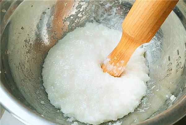 2.糯米热了,加糖,用擀面杖捣碎,或者戴上一次性手套,擦点油抓捏。也可以握着拳头捣成糯米粘。