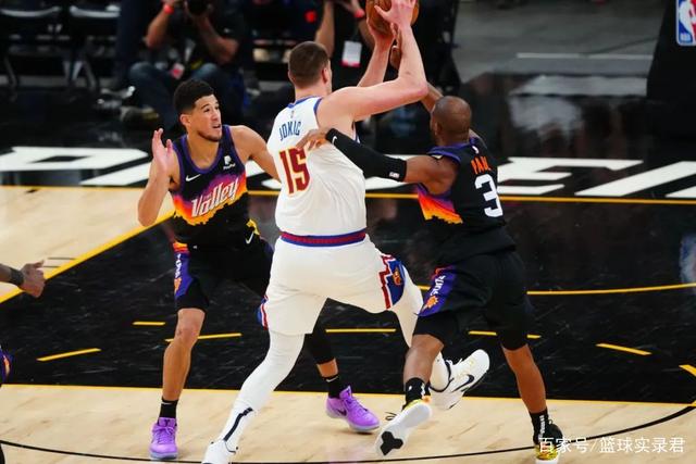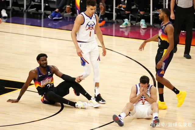 需要说的是掘金的后场,本场比赛,巴顿复出,并且拿下了10分,但是除了巴顿之外,掘金另外三位主力后卫里弗斯、坎帕佐、莫里斯一共19投4中,三分12中3,加起来只有12分,甚至还没有布克上半场的得分(13分)多。