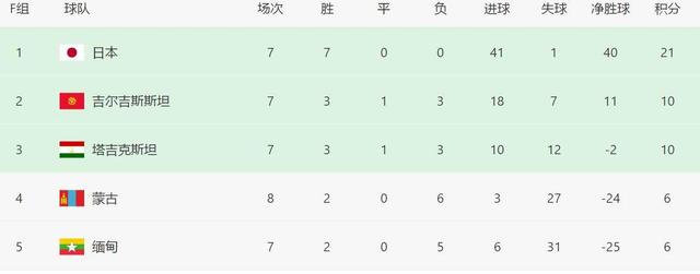 但F组还剩一轮比赛,待此轮结束后,缅甸未必就是小组末名。北京时间6月15日18:25,F组将进行最后2场比赛,缅甸对阵塔吉克,吉尔吉斯对阵日本。理论上,缅甸和吉尔吉斯都是有可能获胜的,假如真的获胜,会出现怎样的奇观呢?