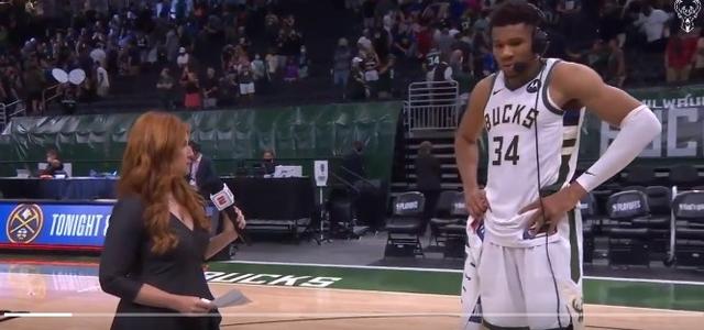 直播吧6月14日讯 今日NBA季后赛,系列赛G4,雄鹿再胜篮网将比分扳平。赛后字母哥在接受媒体采访时谈到了塔克。