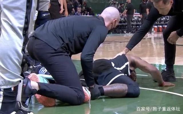 本节比赛也发生了意外,欧文在起跳过后,落地时踩在了字母哥的脚上,脚踝90度弯折。