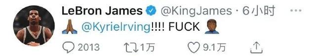 另一场比赛,篮网赢了雄鹿,大比分战成2-2平。詹姆斯在家中观看了这场比赛的直播,第二节中段,欧文在一次进攻中不慎踩到字母哥的脚,遭遇脚踝受伤,随后退场。老詹第一时间发推为欧文祈福:“欧文!靠!♂”