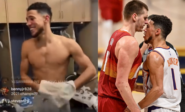 本赛季的NBA,无论是常规赛还是季后赛,布克的发挥都是有目共睹的,在挺进西决之后,太阳队更衣室也是一片欢腾,中锋艾顿和后卫佩恩跳起了舞,各种搞怪庆祝,而1996年出生的布克,则是脱掉球衣,用白毛巾擦拭身上的汗珠,隐约可见的“青春肉体”,让人女球迷胡想联翩。