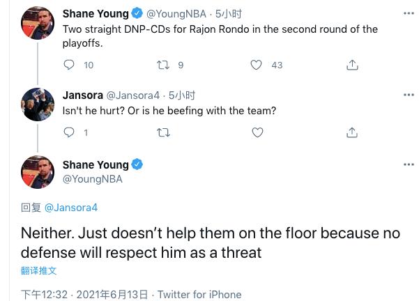 在朗多连续两场被弃之后,有球迷发问,难道他受伤了?还是跟球队有矛盾?对此,Shane Young给出了原因,“都不是。只是在球场上对他们没有帮助,因为没有防守队员会把他当作威胁。”