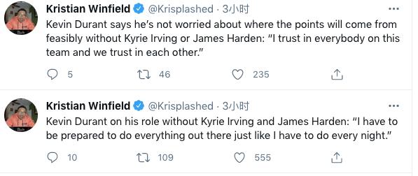 对此,杜兰特也表了态,“我努力不让裁判判罚影响我的比赛,我会准备好在场上付出所有就像我每晚都在做的,我信任这支球队的每一个人,我们必须相互信任。”
