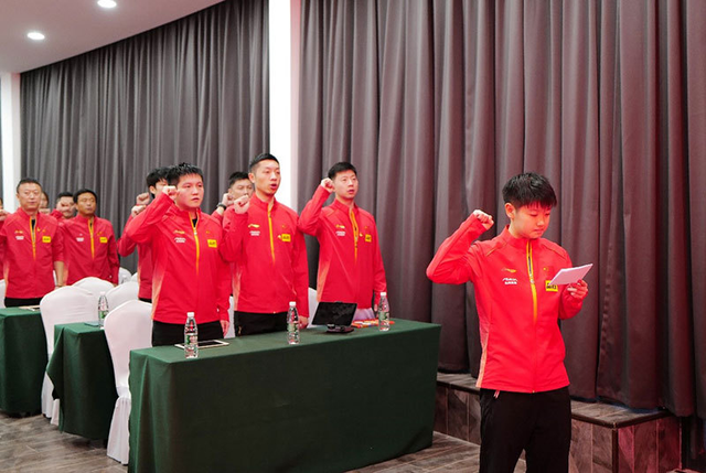 六位奥运选手坐在第一排,左边是马龙、许昕、樊振东,右边是孙颖莎、陈梦、刘诗雯,他们认真听着宣讲,两位P卡选手王楚钦与王曼昱坐在男队三大主力后面,在宣誓的时候王曼昱站到了孙颖莎的位置上。女队奥运阵容后面站着的是中国乒协主席刘国梁与男乒主教练秦志戬、男乒主教练李隼三人,另外马琳、陈玘、黄海诚等教练也参加了本次会议。全体参加会议的人员都进行了东京奥运会反兴奋剂准入考试,所有人都考试合格获得了准入合格证书。根据国乒安排,6月17日-19日将进行一场热身赛,不过这次比赛不对外开放也不安排直播。