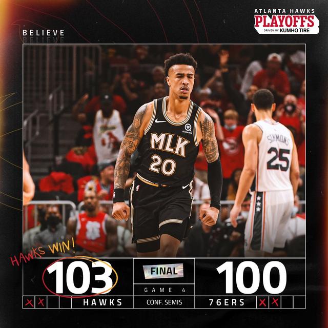 6月15日,大比分2比1领先的费城76人队,在亚特兰大与老鹰队展开了半决赛第4战的较量。此役,76人队志在实现3连胜,从而夺得赛点。而老鹰队,则希望守住主场优势,并终止连败。双方在本场比赛,打出了精彩的攻防表现。