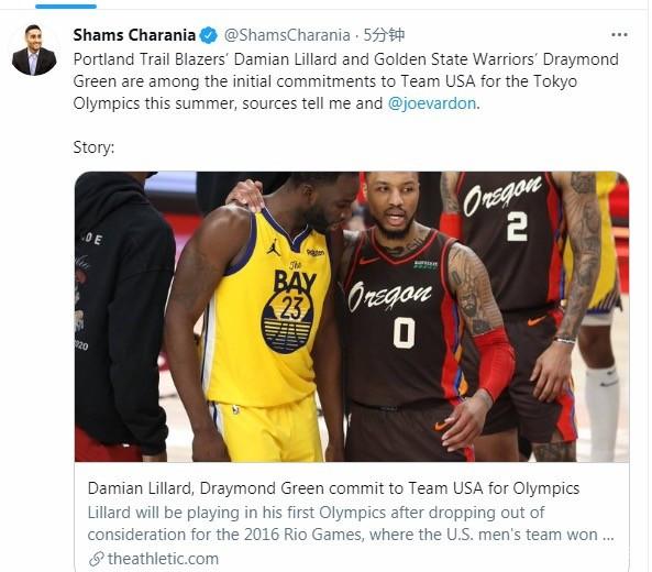 名记Shams报道,利拉德和德拉蒙德-格林承诺将参加本次的奥运会。由于今年NBA赛季的赛程有点密集,导致很多球员出现伤病,也有球员不太愿意参加到奥运会中,从而得到更多的休息时间。利拉德效力的开拓者季后赛首轮出局,格林效力的勇士则未能打进季后赛,两人的体能并没有什么大问题。利拉德参加的话,将会是他首届奥运会,格林则是第二次,16年随队拿到金牌。