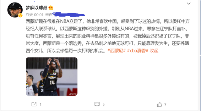 随后辽宁男篮官方到现在也没有宣布要继续签约这三名外援,一方面近辽宁队的李晓旭表示下赛季要回归球队,他的回归可以为辽宁队的5号位置继续补强,然后再加上朱荣振,中锋位置签约外援的机率现在已经不是很大了,另一方面现在李洪庆还在等待合适自己球队的外援出现,那么就再近日辽宁男篮似乎得到了好消息,根据最新消息称,前辽宁队旧将西蒙斯也重回辽宁队,西蒙斯现在很难在NBA立足了,他非常喜欢中国,感受到了球迷的热情,所以委托中方经纪人联系已经辽宁队了。