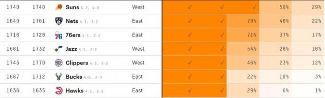 赛后,知名网站FortyEightMinutes根据模型预测更新了相关数据,篮网有78%的可能性淘汰雄鹿晋级东部决赛,闯入总决赛和夺冠概率分别是46%和22%。