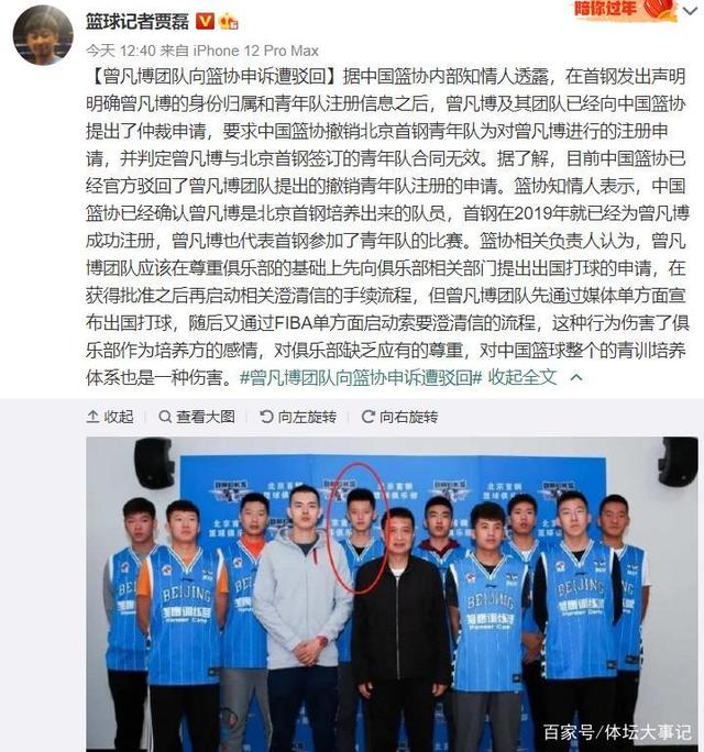 进入6月份,距离上赛季CBA已经过去了一段时间,球迷的关注点在国家队比赛方面,不过国内的篮坛并不平静,毕竟是休赛期,涉及到球员的续约和转会,想要一帆风顺是不可能的。6月16日,篮球记者爆料,曾凡博向篮协提交了仲裁,要求判定他和北京首钢签订的青年合同无效。据了解篮协已经驳回了这个申请,确认曾凡博的归属权就是在北京首钢。
