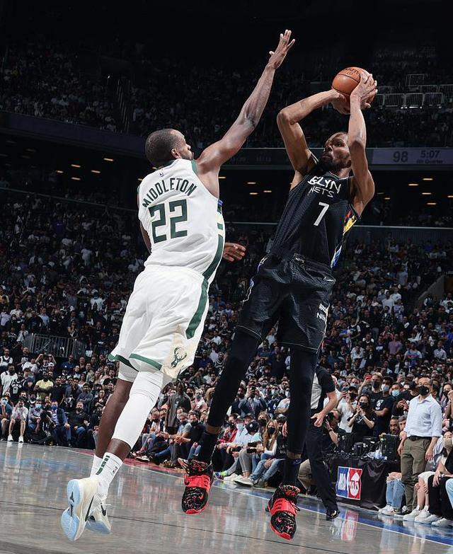 NBA季后赛东部半决赛G5的较量,布鲁克林篮网队主场以114-108战胜密尔沃基雄鹿,强势拿下天王山之战,大比分3-2取得赛点。本战,凯文-杜兰特逆天改命,打满48分钟,狂轰49分17篮板10助攻,一人打爆对手全队。
