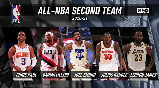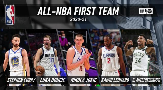 6月16日,NBA官方公布了本赛季常规赛最佳阵容名单,其中一阵为:库里、东契奇、莱昂纳德、字母哥还有约基奇;二阵:保罗、利拉德、詹姆斯、兰德尔、恩比德;三阵:欧文、比尔、巴特勒、乔治、戈贝尔。在最佳阵容还有投票分数公布后,自然也引起了很多的争议。