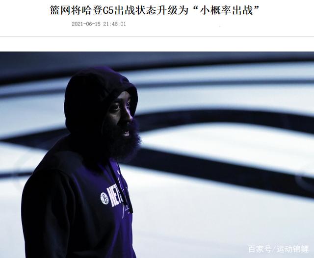 2.《[运动锦鲤]仅仅15小时!哈登G5出战状态变更,准备紧急复出?真是为冠军拼了》仅供读者参考,本网站未对该内容进行证实,对其原创性、真实性、完整性、及时性不作任何保证。
