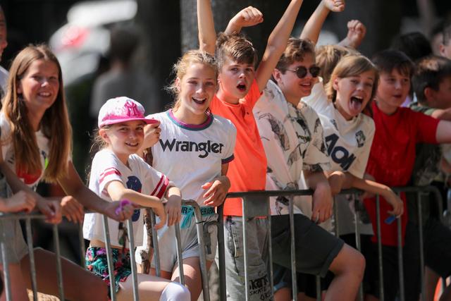 6月16日,小球迷在荷兰队的训练场外迎接队员。新华社记者 郑焕松 摄