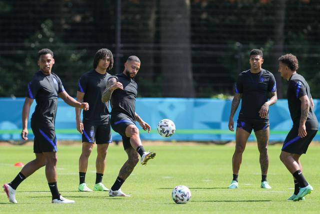 6月16日,荷兰队球员德佩(左三)与队友一同训练。新华社记者 郑焕松 摄