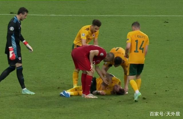 当时罗登倒在了草坪上,曾效力于中超的伊尔马兹心态有点爆炸,上前动了罗登的脸部,示意他赶紧起来不要“装”。这一下,引发威尔士球员的强烈不满!威尔士球员连续推搡伊尔马兹,现场一片混乱,这也是本届欧洲杯开始后最混乱的一次场面。多人拉拽在一起后,最终裁判出手:威尔士方梅法姆、戴维斯和土耳其方伊尔马兹、恰尔汗奥卢各吃到一张黄牌!同时连出4黄,也创造了本届欧洲杯一个小纪录。在4黄之前,双方并无人染黄。