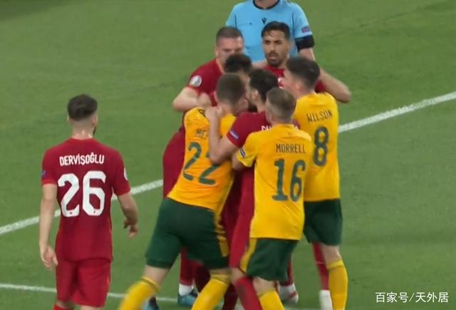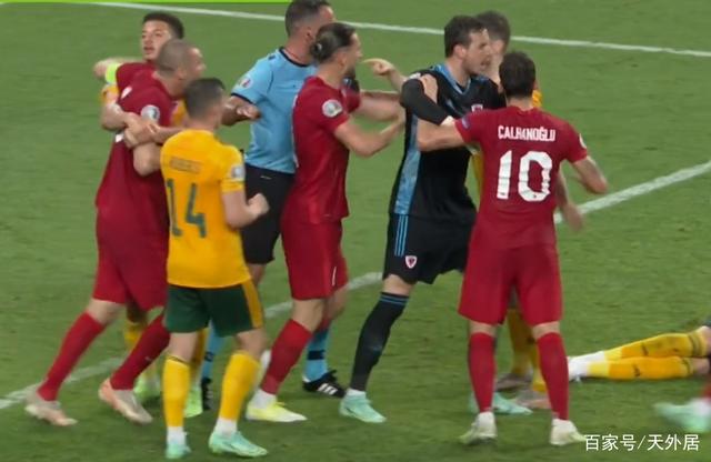 欧洲杯小组赛第二轮,土耳其0-2不敌威尔士,这支身价高达3.25亿欧元的球队2连败,2轮0球0分,濒临出局。最后时刻,双方爆发了冲突,裁判一共掏出了4张黄牌。