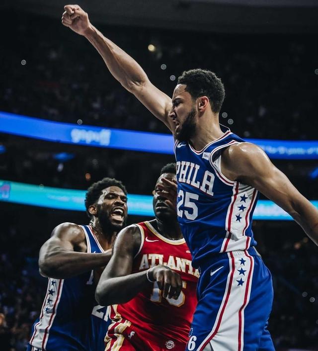 但是没办法,老鹰这支球队打得更团结,内线虽比76人若,整体上内外线实力比较均衡,最重要的是76人这边有一位和恩比德不兼容的西蒙斯。
