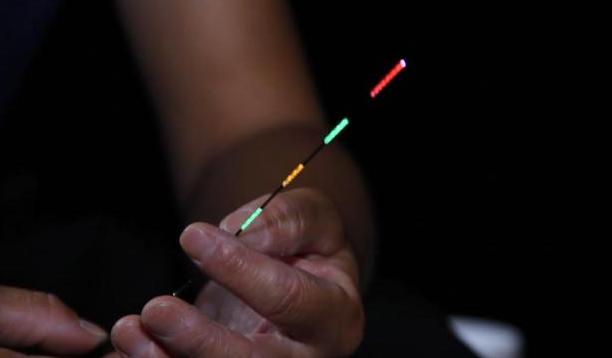 三是冷光漂。这种浮漂的优点是发出的光完全不刺眼,而且比较显眼,无论远近都能看清。如果让我选的话,我会选择冷光的电子漂。这是因为冷光漂发出的光比较柔和,不刺眼,不会有倒影。而且冷光漂在两个亮目中间的黑色漂目上有加了一个小碎目,如果我们用短竿钓鲫鱼,这个小碎目就非常方便我们抓轻口;如果用长竿钓,距离远,这个小碎目就不明显了,可以主抓稳口。