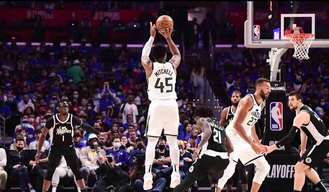 和快船的分区半决赛,快船拿下前两场,很多人看好爵士能赢球。不过此后米切尔受伤,快船找回进攻状态。系列赛的天平逐渐朝快船这一方扭转。天王山之战,爵士坐镇主场被没有莱昂纳德的快船击败。这一战非常伤害他们的士气。今天米切尔倾尽全力,但快船全民皆兵,曼恩、保罗乔治、杰克逊都有上佳发挥。米切尔双拳难敌四手,只能接受被淘汰的结局。