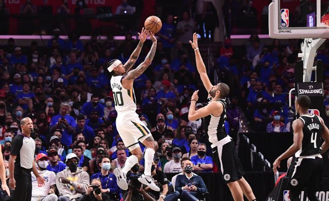 一个具备投射能力,传球能力,终结能力,还有相当出彩防守能力的前锋无疑是小球内线的最佳蓝本。巴图姆终于在33岁找到了自己的最佳归宿。这轮系列赛,爵士对巴图姆这个点无可奈何。因为放空他他会直接投篮。如果不放空巴图姆决赛的内线很容易出现问题。快船的持球进攻者比如乔治和杰克逊就可以找到机会完成终结。
