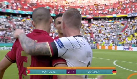 上半场若塔得球后横传给C罗,葡萄牙队长先拔头筹,遗憾的是,上半场尾声阶段先是鲁本-迪亚斯压力下将球打进自家大门,随后格雷罗不慎自摆乌龙,德国0-1到2-1逆转比分。