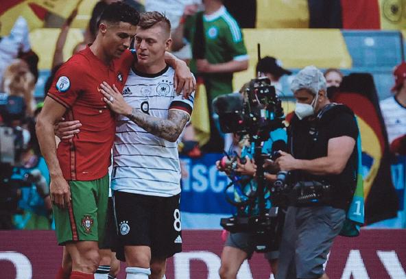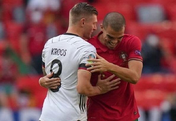赛后,C罗伫立在场内,德国中场克罗斯走过来安慰昔日皇马队友,两人也攀谈了起来,随后佩佩也走了过来,昔日“银河战舰”三大球星再度同框,也让人无限感慨!