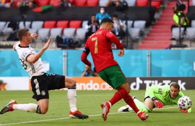 北京时间6月20日00:00,欧洲杯F组第2轮,葡萄牙对阵德国。上半场C罗首开纪录,不过鲁本-迪亚斯和格雷罗各送一记乌龙,葡萄牙半场被德国逆转2-1。