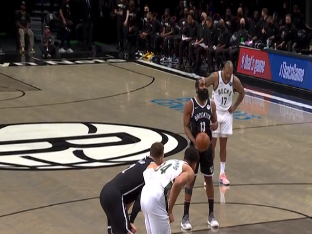 哈登持球突破再次造成犯规,比赛先进入官方暂停时间,暂停回来后哈登两罚全中,半节时间不到哈登就获得了5次罚球的机会,并且全部命中。布朗接传球空切上篮打进,字母哥变相突破上篮回敬一个2+1,紧接着又在反击中命中一个中距离跳投追平比分,关键时刻又是哈登站出来,持球突破贴着霍乐迪强行出手再次造成犯规,两罚全中。