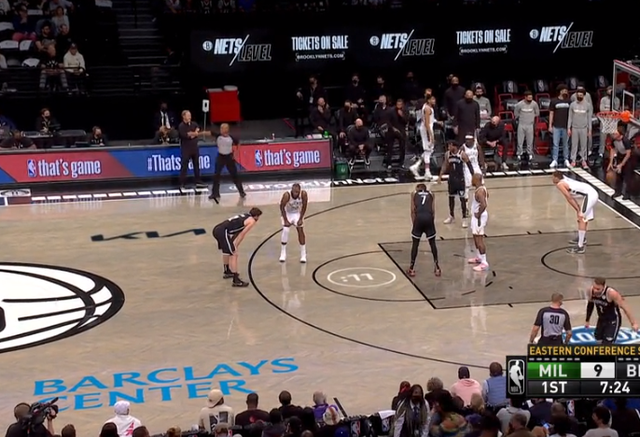 今天篮网将布朗代替格林首发出战,首节比赛开始雄鹿率先拿到球权,一上来大洛和塔克就在外线先后命中三分打开局面,杜兰特一人里突外投连砍5分做出回应,哈登后撤步三分造成字母哥打手犯规,并且命中全部罚球。雄鹿这边开场进了两个三分后,进攻打得突然有些乱,连续多个回合投篮打铁,随后哈里斯命中追身三分扩大分差,关键时刻字母哥站出来,外线持球强投三分打进,霍乐迪突破反手上篮也打进一球追平比分。