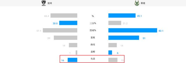 首先就是失误,上一场比赛雄鹿和篮网的失误次数都不算少。篮网队一共出现16个失误,雄鹿则有15个,双方的拼抢很激烈导致失误频发。当然,很多失误自身可以避免。