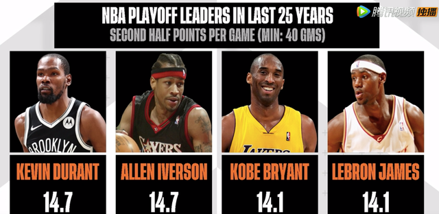 生死抢七,杜兰特此前生涯打了4次,他场均33.3分7.3板3.0助攻,战绩为3胜1负。据统计,在NBA历史上不止一次打过抢七的球员中,杜兰特的场均得分仅次于詹姆斯(8场比赛、场均34.9分)和乔丹(3场比赛、场均33.7分)。