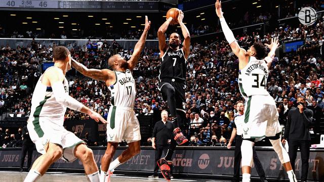 加时还剩40秒,雄鹿领先2分。杜兰特跳投不中,随后他三分也没有,最终,篮网功亏一篑。