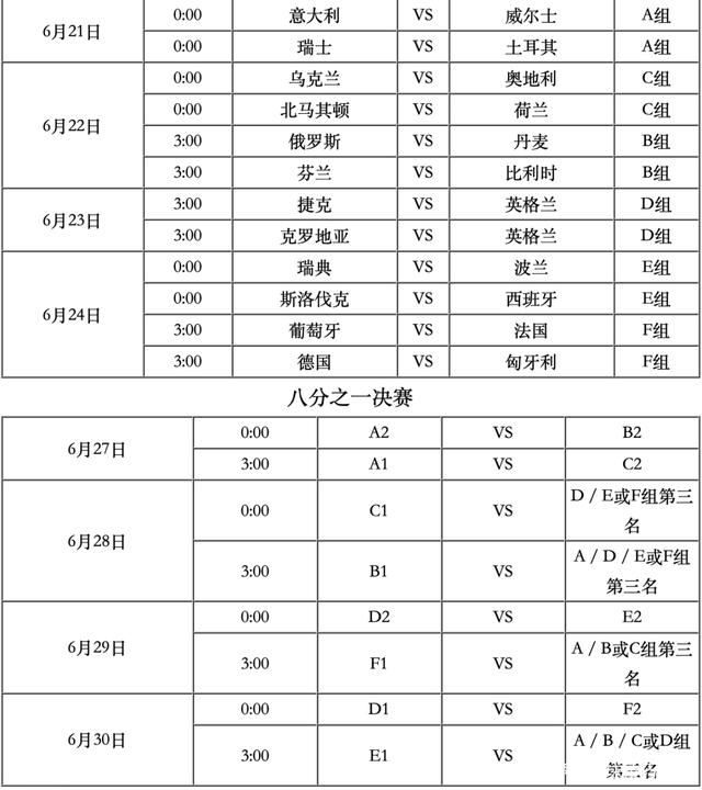 如此一来,欧洲杯小组赛第二轮全部结束!各小组的积分榜又有了新的变化,侃球君就此一一列出,请各位审阅。(出线规则:每支小组的第一名、第2名以及小组赛成绩最好的4个小组第三名都将获得一个晋级至16强赛的资格)