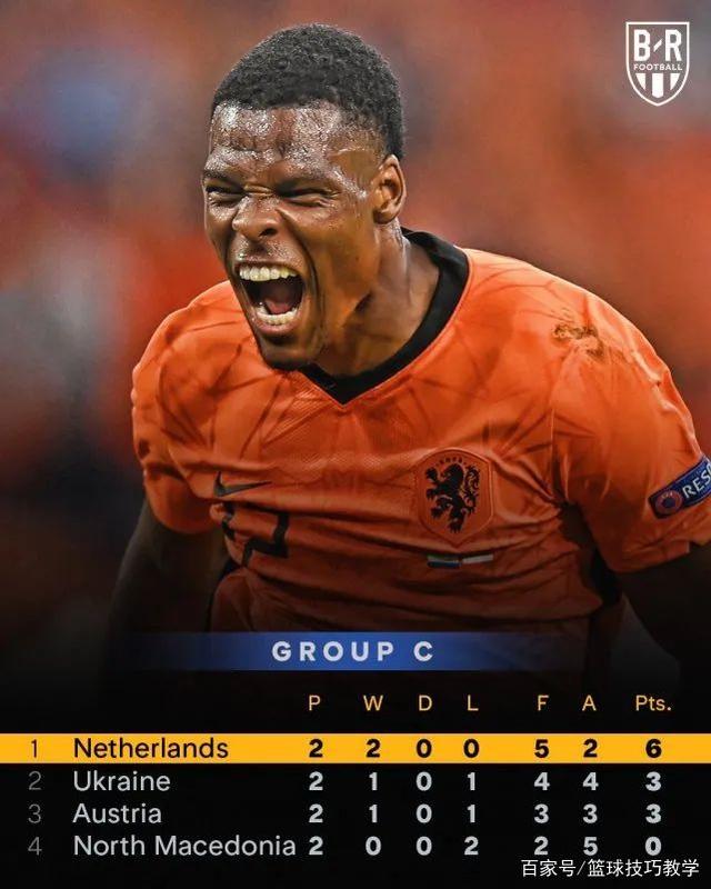 C组,荷兰提前出线,乌克兰和奥地利将争夺第二名。北马其顿确定出局。末轮对阵:北马其顿VS荷兰,乌克兰VS奥地利。