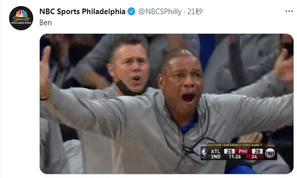 费城本地的媒体看到这一幕傻了眼,不禁发推吐槽:“本。。。”