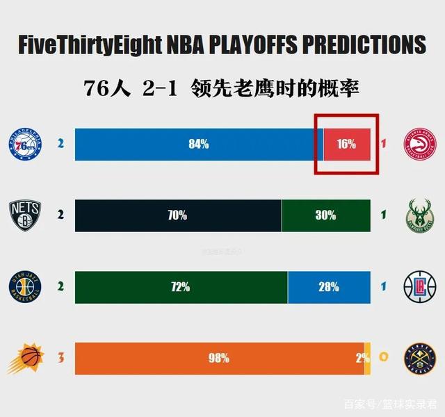 但即便如此,老鹰依然不被看好——这轮系列赛开始前,美国媒体预测的老鹰晋级概率只有39%,当老鹰大比分1-2落后时,这个数字更是低至16%,现在再看,这“16%的奇迹”也算是完成了。